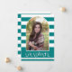 Modern teal blue Class of 2023 arch with photo graduation announcement. It features the text "GRADUATE", a photo in an arch and stripes in teal and white.