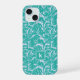Teal Blue Damask Pattern Monogram iPhone 15 Case