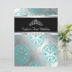 Teal blue damask black white diamond tiara girls princess first birthday party invitation.