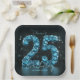 Celebrate a quarter-century in sparkling style with these glamorous 25th Birthday paper plates. The design features a stunning 3D-style typography where the number "25" is rendered in luxurious teal blue faux diamonds and gemstones. Set against a sophisticated black background with soft, glowing bokeh lights, this design perfectly captures the excitement of a milestone night out.