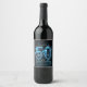 Set against a sophisticated dark bokeh background with neon blue starbursts, this label turns an ordinary bottle of wine into an unforgettable 50th birthday keepsake or party favor.