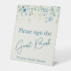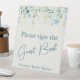 Teal Blue Floral Ivory Bridal Shower Guest Book Pedestal Sign
