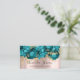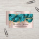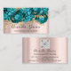 Teal Blue Flowers Rose Gold Logo Event Planner Business Card
