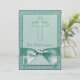 Elegant teal blue cross girl's First Holy Communion invitation template. This pretty teal blue jade first communion invitation is easily customised for your event by simply choosing the "Customise it!" button to begin adding your event details, font style, font size & colour, and wording. Please note - all of the stickers, cards and invitation designs you will find on Zazzle are printed graphics with no actual jewels, bows, raised, embossed, or added parts or pieces.