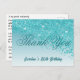 Teal Blue Glitter, 80th Birthday Thank You Postcard