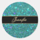 Teal Blue Glitter Classic Round Sticker