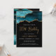 This elegant 80th birthday party invitation features a watercolor image of an agate geode in shades of teal blue with faux gold glitter highlights. The words "80th Birthday" appear in gold-coloured modern handwriting script. Customise it with the name of the honoree in gold-coloured text and the details in white on a black background. A matching teal and gold agate design appears on the reverse side.