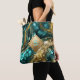 The design is anchored by a sophisticated gold diamond-shaped frame, ready for you to customize. Simply use the template fields to add your own initial and name in a chic script font. Whether you are running errands, heading to the beach, or looking for the perfect trendy bridesmaid gift, this teal and gold agate-style tote blends modern art with practical elegance. Note: The gold textures are a high-quality print effect, not real metallic foil.