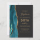 Teal Blue Gold Agate QR Code 50th Birthday Invitation