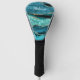 Teal Blue Gold Marble Custom Name Golf Head Cover