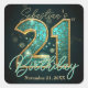Celebrate this major milestone in style with this elegant 21st birthday sticker. The artwork features a stunning "21" typography filled with a teal blue and turquoise mosaic agate texture, outlined in a faux gold foil effect. Set against a dark, moody background with glowing bokeh lights and sparkles, this design exudes luxury and sophistication.
