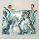 Teal Blue Gold White Modern Marble Agate Fleece Blanket