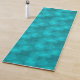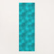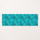 A luxury design yoga mat with a repeating pattern of overlapping teal blue-green circles - helpful during a yoga session to centre your mind.