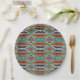 Teal Blue Green Red Terra Cotta Tribal Art Pattern Paper Plate