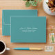 © Socialite Designs. Add a touch of timeless sophistication to your wedding mailings with this customisable teal RSVP return envelope. With a blue-green tone and text printed directly on the front, it’s ready to be personalised with your address for RSVP cards. Whether you're planning a romantic ceremony or an elegant soirée, this envelope completes your suite with grace and charm. Ideal for weddings, bridal showers, engagements, or any celebration that calls for thoughtful details.