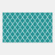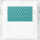 Teal Blue-Green White Moroccan Quatrefoil Pattern Rectangular Sticker