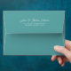 © Socialite Designs. Add a touch of timeless elegance to your wedding stationery or correspondence with this customisable teal envelope. Featuring a blue-green tone and a classic design, the envelope includes a customisable return address printed gracefully on the back flap. Perfect for weddings, bridal showers, baby announcements, or any stylish event that deserves attention to detail. Whether you're sending heartfelt letters or formal invitations, this envelope elevates your message with warmth and sophistication.