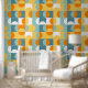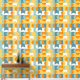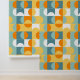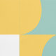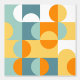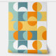 This design showcases a modern geometric pattern with circles and half-circles in shades of seafoam green, teal blue, yellow, and orange against a white backdrop. It's an elegant and stylish design that embodies eclectic minimalism, perfect for artistic interior designers, decor enthusiasts, trendsetters, and fans of vintage retro or abstract digital geometric motifs. This ornate yet funky hipster pattern is versatile, available on a variety of contemporary home decor items, making it suitable for enhancing the ambiance of spaces such as master or children's bedrooms, kitchens, nurseries, living rooms, women's caves, college dorms, condos, studios, or apartments.