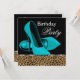 Teal Blue Leopard High Heels Birthday Party Invitation