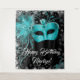 Teal Blue Masquerade Birthday Party Backdrop Tapestry