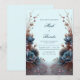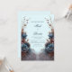 Invite your guests to an event of striking, modern elegance with this uniquely symmetrical botanical composition. The design features large, velvety teal blue floral bloom at the center of the arrangement, beautifully contrasted by metallic copper and bronze toned feathery foliage. Delicate arching branch with small lavender purple bud add a sense of height and movement against the serene, pale blue gradient background. This wedding invitation is a premier choice for a modern winter ceremony, a sophisticated dark botanical event, or a chic contemporary celebration. It ensures your event details are presented with a sense of artistic balance and high-end drama that will intrigue your guests from the moment they open the envelope.