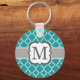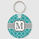 Teal Blue Monogram Letter M Quatrefoil Key Ring