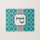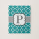 Teal Blue Monogram Letter P Quatrefoil Jigsaw Puzzle