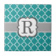 Teal Blue Monogram Letter R Quatrefoil Tile
