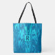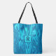 Teal Blue Ocean Waves Abstract Monogram Initial Tote Bag