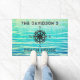 Teal Blue Ombre Sea Monogrammed Outdoor Doormat. A compass rose to keep your ocean bearings. Enjoy the stylish optical illusion effect with the teal to blue tones of the ombre background. Nautical, coastal, beach house, or sailing style. Fun, flirty and fabulous style! Change the name, sentiment, or monogram to customise.