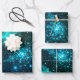 Teal Blue Ombre Starburst Celestial Fireworks Wrapping Paper Sheet