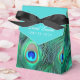 Elegant teal blue and vibrant emerald green, royal blue and teal blue peacock feather wedding favour boxes. You can add text in the font style, size and colour of your choice on this beautiful teal blue peacock wedding favour box.