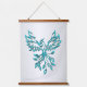 Teal Blue Phoenix Rises on Silver Hanging Tapestry