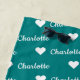 Teal Blue Personalised Name Pattern Beach Towel with Heart Design Summer Beach Bath Towel.