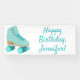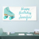Add a custom touch to roller skating themed parties or just say happy birthday to someone who loves to skate. This personalised banner features an illustration of a retro style roller skate in light teal with your message beside it in coordinating script lettering.