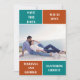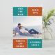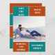 Teal blue and rust colour block wedding Save the Date card. The back includes a pattern with wide bands in teal blue and rust.