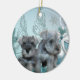 Two cute silver grey Schnauzer puppies teal blue Christmas ornament.