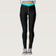Custom Colours - Sports Teal Blue Side Stripe Black Leggings - MIGNED Design - or Choose / Add Your Stripe and Leggings Colours !