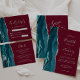 Teal Blue Silver Agate Burgundy Save the Date Card