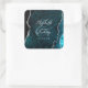Teal Blue Silver Agate Script Wedding Square Sticker