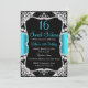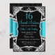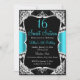 Teal Blue Silver Black Tiara Sweet 16 Invitation