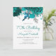 Teal Blue Silver Floral 70th Birthday Party Invitation