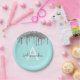 Teal Blue Silver Glitter Monogram Birthday Paper Plate
