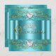 Teal Blue Silver Gold Quinceanera Birthday Party Invitation