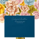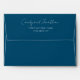 Teal blue coloured mailing envelope for your wedding invitations and features your name and address printed on back flap in a modern script style. Personalise your envelope by editing and replacing name and address with your own. Edit further to change font style or colour. Select your envelope size that fits your invitation.
