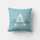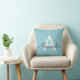 Teal Aqua Blue Sparkle Glitter Monogram Name and Initial Pillow. The pillow makes the perfect gift for someone decorating her room in ice blue.