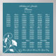 A wedding reception seating chart is an elegant way to direct your guests to their tables instead of using table place cards. You can also keep your seating chart as a momento of your wedding and the people who celebrated with you. This wedding seating chart features a white floral design on a teal or aqua blue background with white text. It is available in several different sizes with an optional frame. We also offer a rectangular version of this wedding reception seating chart that fits many standard frame sizes.