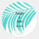 Teal Blue Tropical Palm Tree Leaf Nautical Wedding Classic Round Sticker
