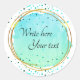 Teal Blue Watercolour Circle Gold Elegant Classic Round Sticker