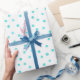 Teal Blue White Confetti Dots Pattern Wrapping Paper